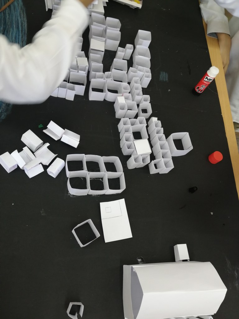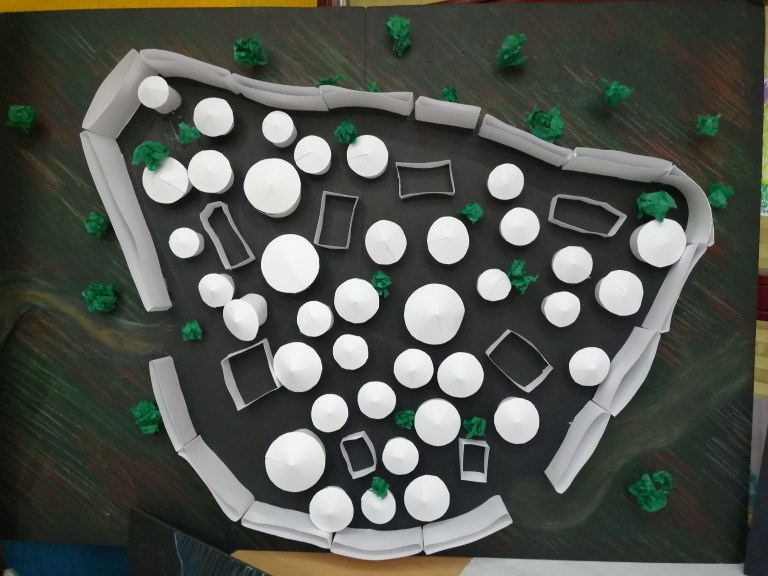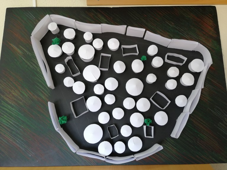 Una vez establecidas las bases del proyecto nos dispusimos a organizar las clases. A partir de los seis grupos cooperativos de cada una de las cinco clases que tenemos en 1º de la ESO, repartimos las áreas de trabajo para investigar y construir. Así cada grupo por sorteo se dispuso a adentrarse en la defensa de las ciudades, en su cultura o administración, su economía, su religión o su disposición urbanística y viviendas. De forma paralela iban conociendo las distintas ciudades en EPV, creando las tramas que después llevarían a la maqueta.