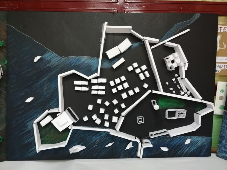 Para ello comenzamos un trabajo paralelo entre las dos asignaturas para llegar a la construcción de una maqueta en tamaño DIN-A2 de cinco ciudades de la antigüedad. Pero este es el resultado final, primero desde EPV se avanza en el concepto de urbanismo a partir de la comparación de distintas tramas urbanas, mientras que en GEH se establecen los ámbitos que hay en una ciudad y que se traducen en construcciones arquitectónicas. El fruto del trabajo de las dos asignaturas es la maqueta final.