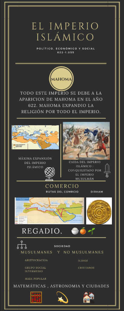 Con este post comenzamos la publicación de los proyectos que elaboraremos a lo largo de este curso. En este caso vamos a tratar del proyecto del primer tema de Geografía e Historia de 2º de la ESO, el paso de la Edad Antigua a la Edad Media y los imperios bizantino, islámico y carolingio. Para ello y al ser un tema muy amplio, hemos querido sintetizar el contenido en infografías para que puedan diferenciar bien y destacar las cuestiones más relevantes de cada cultura.