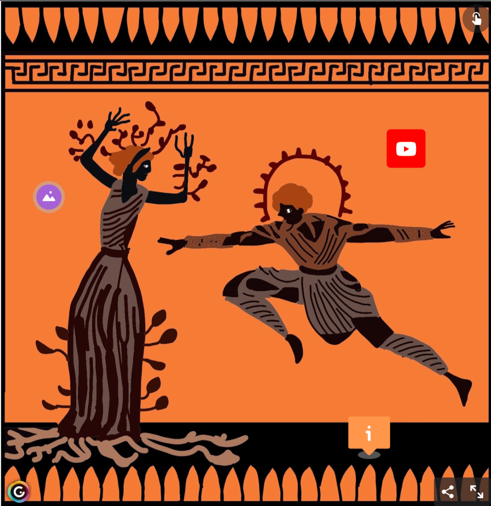 Por su parte en la asignatura de Educación Plástica Visual, una vez leído y trabajado el mito, debían desarrollar una ilustración en el Ipad con la aplicación Adobe Sketch, que fuese similar a las pinturas griegas impresionadas en las cerámicas, ya fuesen las negras o las rojas.