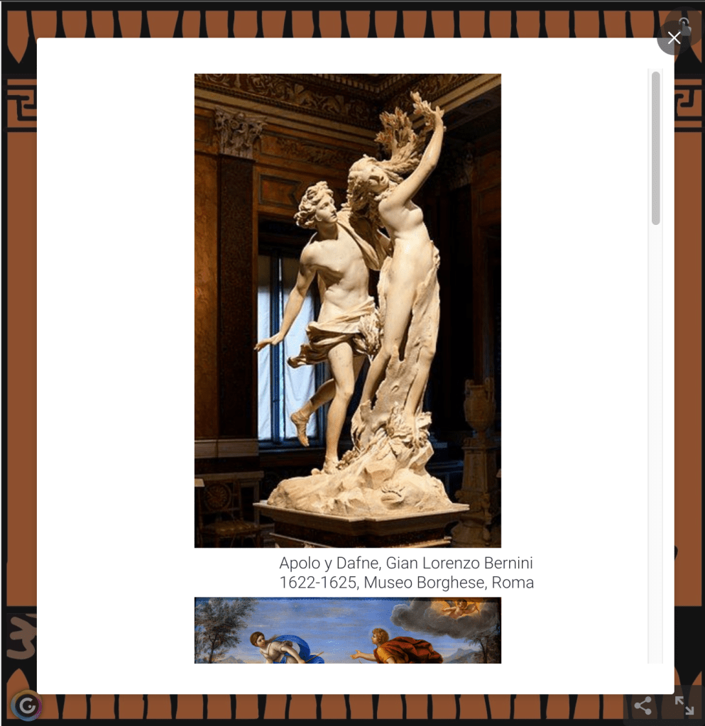 En segundo lugar tiene que hacer una investigación sobre cómo ese mito se ha desarrollado a lo largo de la historia del arte. Para ello debían utilizar buscadores de museos y no solo desde el punto de vista pictórico sino también en el conjunto de las artes plásticas. Una vez seleccionadas las obras deben señalar cinco datos concretos, título, autor/a, fecha de creación, museo en el que se alberga y ciudad.