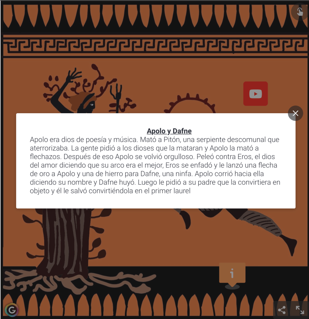 En 1º de la ESO seguimos con los proyectos multidisciplinares. No hemos escrito ningún post hasta ahora ya que hemos repetido el proyecto de las cuevas de la prehistoria que ya llevamos a cabo el año pasado con Educación Plástica Visual. Sin embargo recuperamos uno desarrollado hace dos cursos, una posta interactiva de diferentes mitos griegos con Genially.